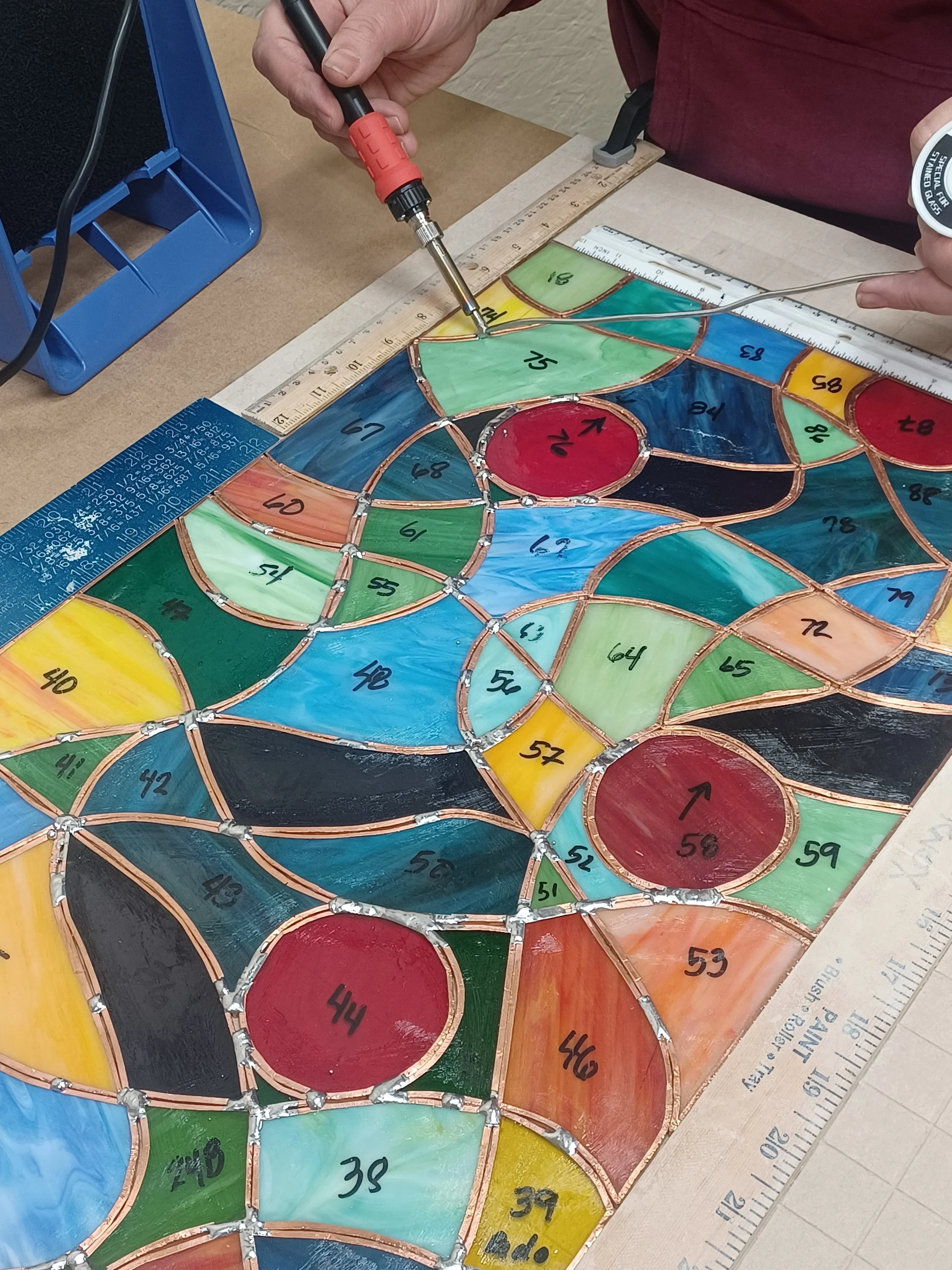 Learn Stained glass for the first time or take this class to continue to perfect your stained glass skills? In this 6 session class, you will have the freedom to create your own pattern and perfect your cutting and soldering technique to create your own unique stained glass window of any size.
